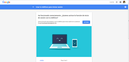 1. Lo primero que debes hacer, es iniciar sesión a través de tu cuenta de Gmail. Una vez realizado esto, se mostrará en pantalla una ventana con el nombre “Usar tu teléfono para iniciar sesión”.