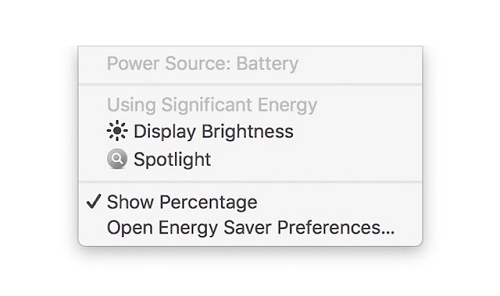 Dentro del panel de batería de la MacBook, se puede encontrar un aviso que informa cuando el brillo de la pantalla es mayor al 75%. Una vez que el usuario haga clic sobre dicho anuncio, el brillo de la pantalla se establecerá al 75%, ayudando así aumentar la duración de la batería.
