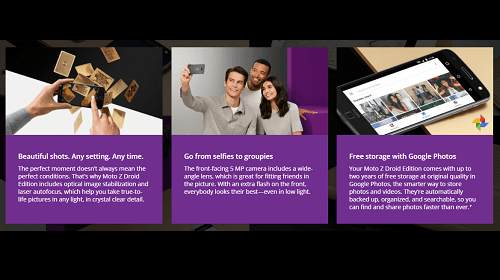 Esto deja al Moto Z DROID Edition con una oferta de hasta dos años de almacenamiento gratuito de fotos en calidad original en Google Photos, la forma más inteligente de guardar fotos y videos. Estos serán automáticamente respaldados, organizados, y el usuario podrá buscarlos de forma amigable, de modo que se pueden hallar las fotos y compartirlas más rápido que nunca.