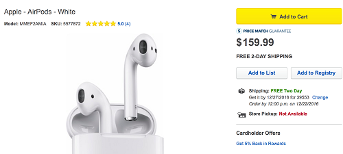 Afortunadamente, durante el 27 de diciembre de este mes, un nuevo stock de AirPods estará llegando a la tienda en línea de Best Buy. Al igual que en Sprint, es probable que los auriculares de Apple se estén vendiendo por tiempo limitado, por lo que no todos podrán comprar unos.